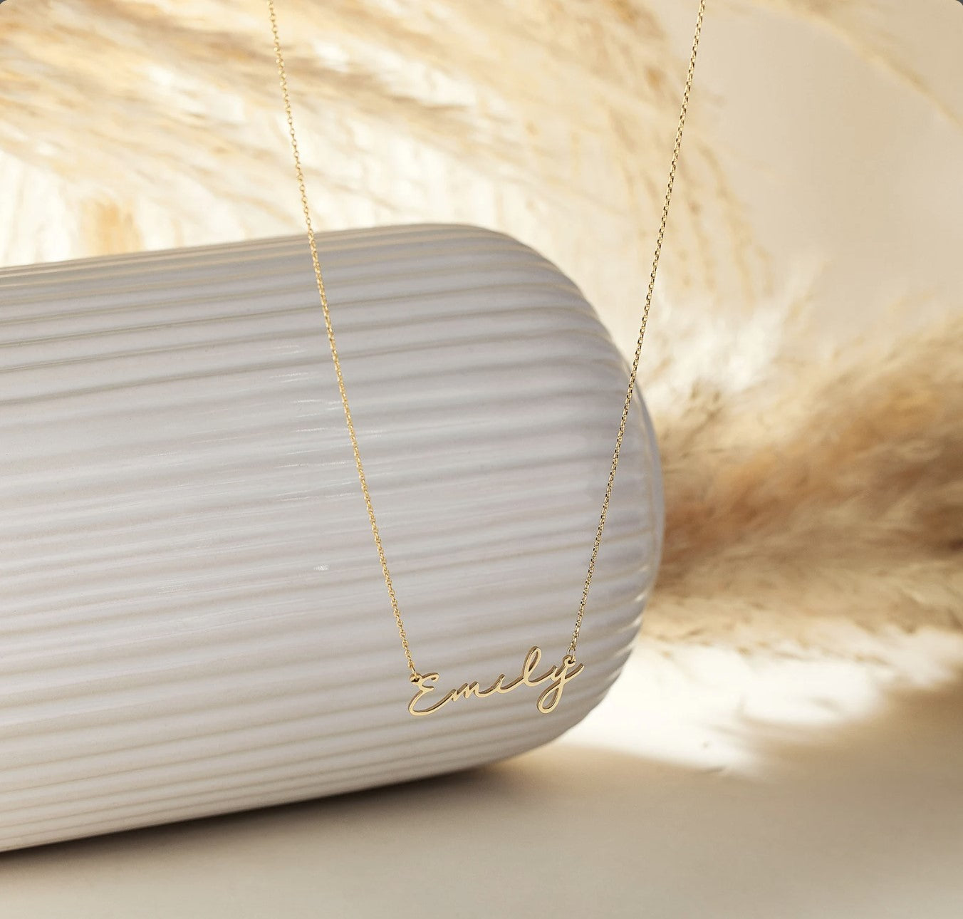 Dainty 18K Gold-plated personalized name necklace. A minimalist, custom jewelry Christmas gift